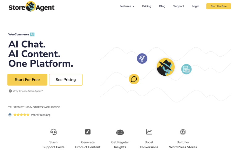 StoreAgent is the most advanced AI assistant for WooCommerce, acting as a virtual sales expert and content writer directly on your site. What makes it so powerful is that it trains its AI specifically on your store’s products, pages, and documents. This creates a custom-trained chatbot that can instantly and accurately answer customer questions, guide them to the right products, and provide support around the clock.